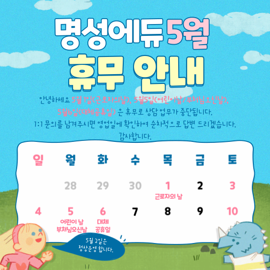 2025년 5월 1일 , 5일, 6일 근로자의날, 어린이날/부처님오신날, 대체공휴일 은 휴무입니다.
